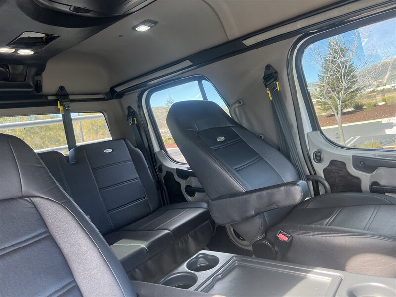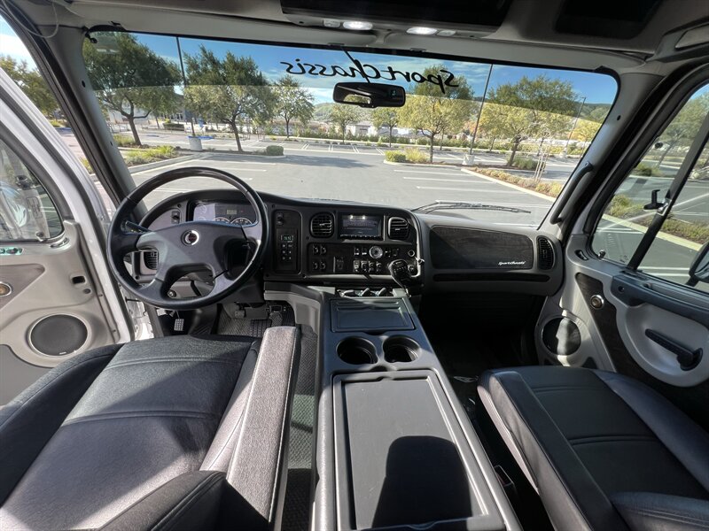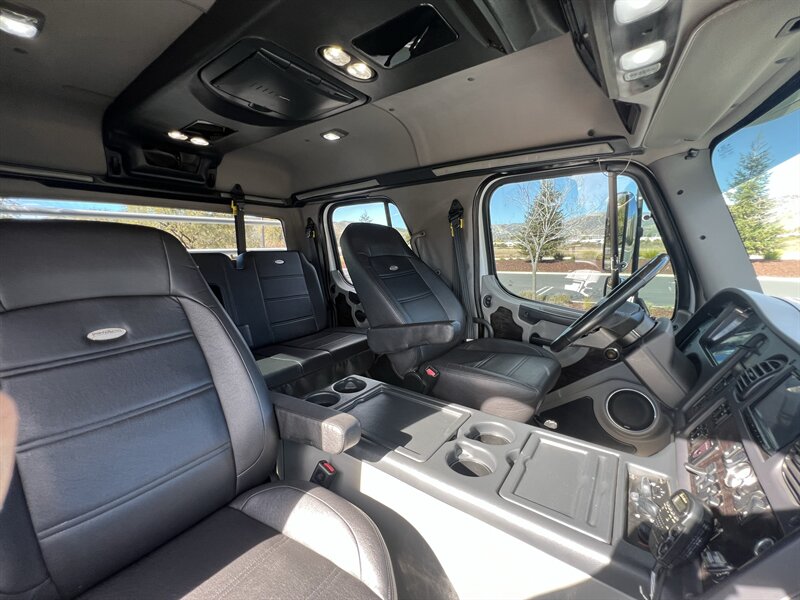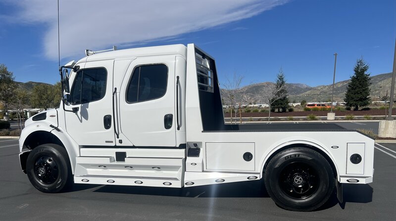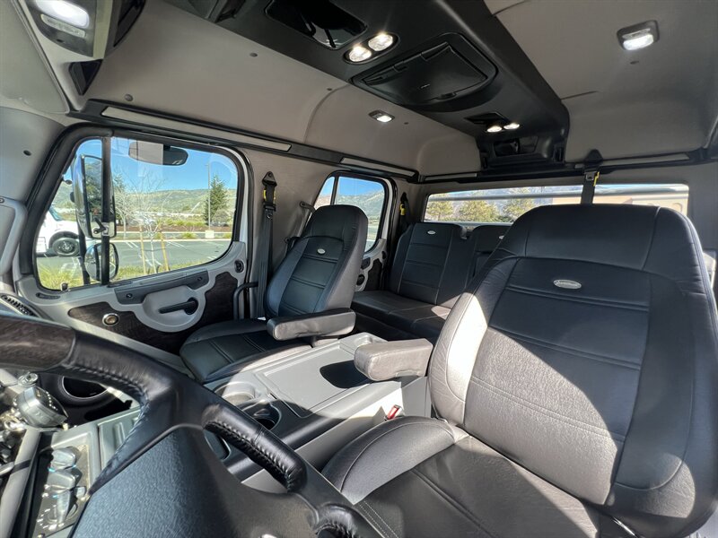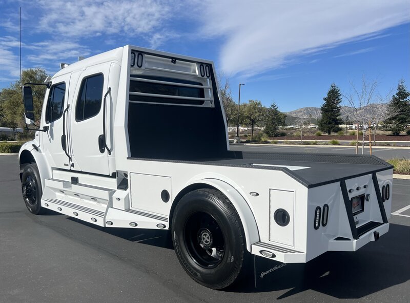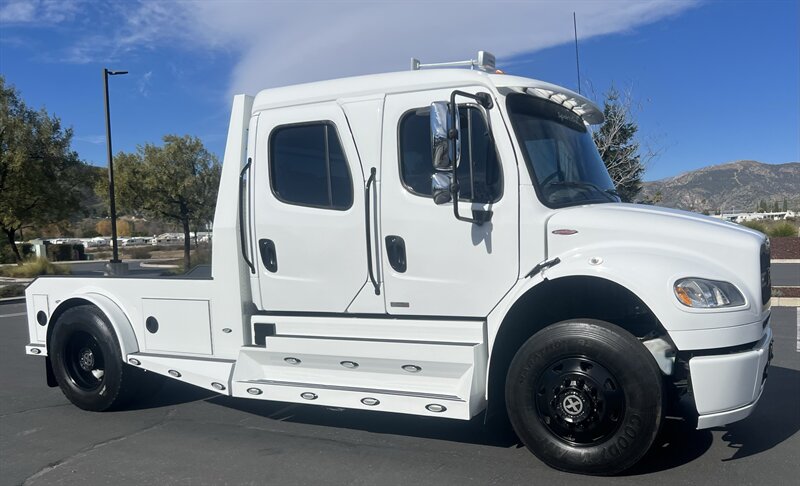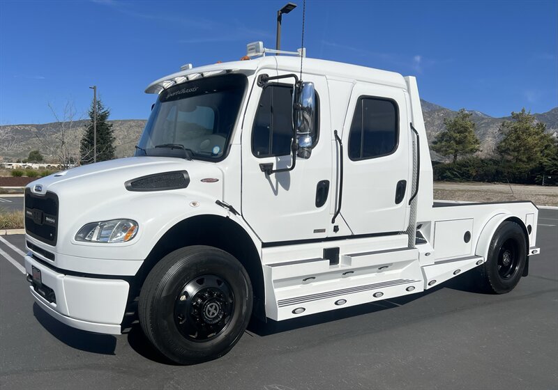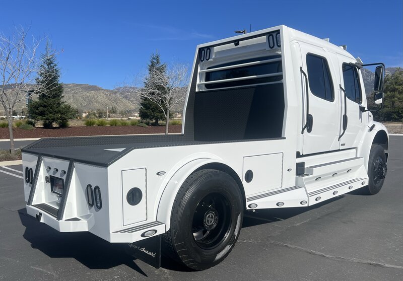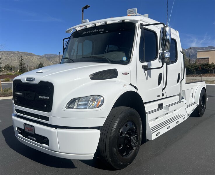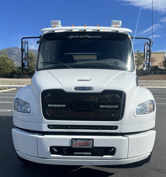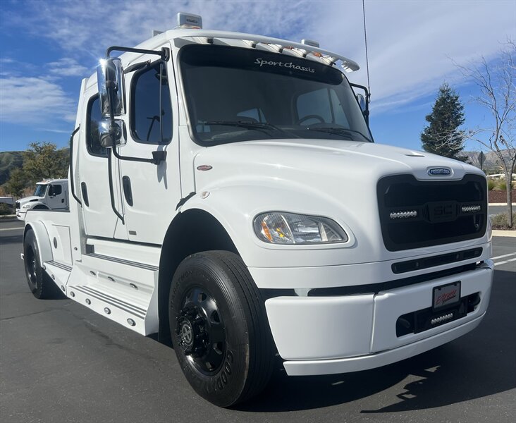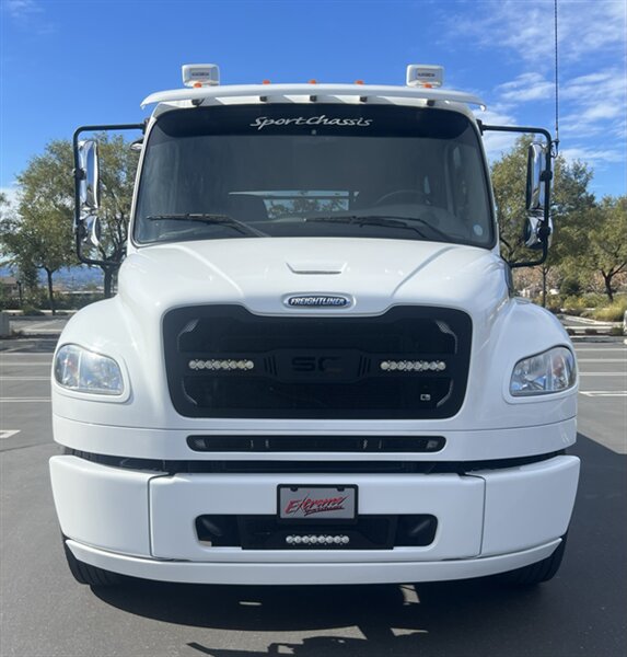 CALL SCOTT 909-225-7277..2012 FREIGHTLINER SPORTCHASSIS RHA114...ONLY $129800..Freightliner M2 Sport 106 Cummins -350 8.3L 350 HP ...1050 LB/FT ... Allison transmission TRV Series 3200, JUST SERVICED, ALL FILTERS, BLACK OUT PACKAGE, AMERICAN RACING WHEELS, CALIBER 9 OFF ROAD GRILL PACKAGE, Exterior Footprint 113 from base of wheels to top of air horn 99 wide from door to door, not including mirrors 277 from grill to bumper Axle, Suspension & Equipment BOSCH hydraulic brake package, 10,000 lb single front axle 10,000 lb taper leaf front suspension Payload capacity 6,161lb Gross vehicle weight rating 19,500lb TRW THP-45 power steering Bilstein front shock absorbers, 11,500 L-Series single rear axle 4.56 axle ratio Trac-tech full time no-spin rear differential All Axles Airliner 11,500lb SportChassis recreational vehicle rear air-suspension Manual dump switch for air suspension with autofill override valve Single rear suspension leveling valve w/ping tank Dual 80 gallon rectangular aluminum fuel tank Alliance fuel/water separator with heated bowl and indicator light Equiflow inboard fuel system w/ auxiliary fuel supply return ports Tires & Wheels F/L Domed Turbo, 22.5X8.25 10-HUB PILOT aluminum wheels 16ply radial tires, Newly designed LED running and brake lights, Cab Interior Spacious luxury class crew cab No CDL required, Short turning radius Backup camera Leather wrapped steering wheel Air-ride premium leather seating. Included camera observation system... Lay down rear sofa Marine grade carpet and protective floor mats USB power ports 115-volt power outlet. Auto locking no-spin rear differential Dual 26 Air Horns. Payment is on approved credit. 180 months at 7.99% plus tax, title, license, doc fee, new tires, 30% down. PLUS dealer added options CALL SCOTT 909-225-7277 E-mail: scottc@extremesportchassis.com