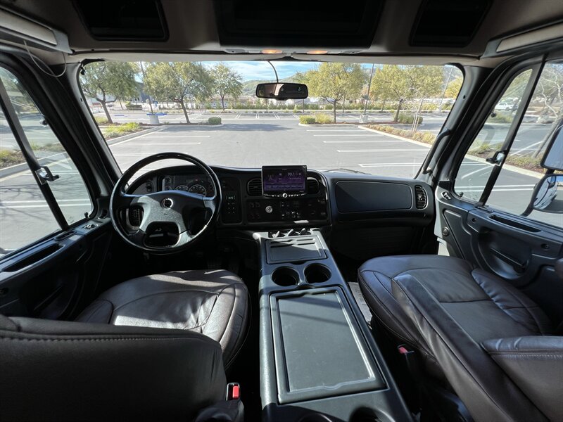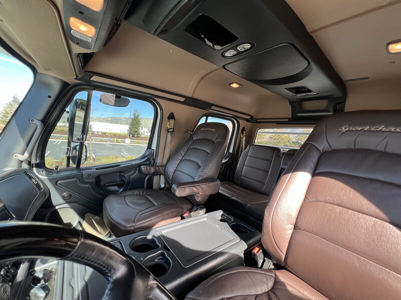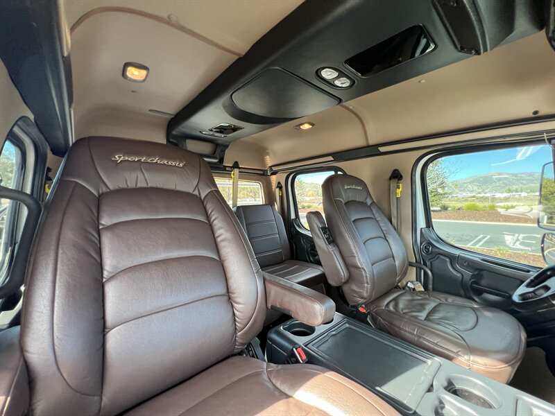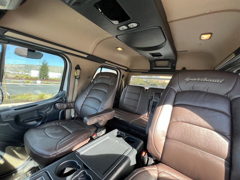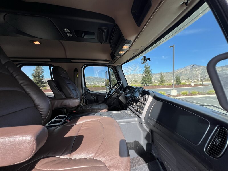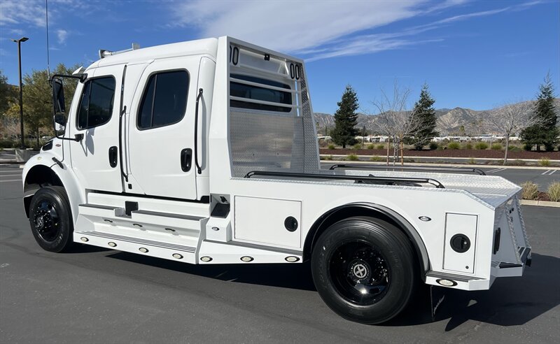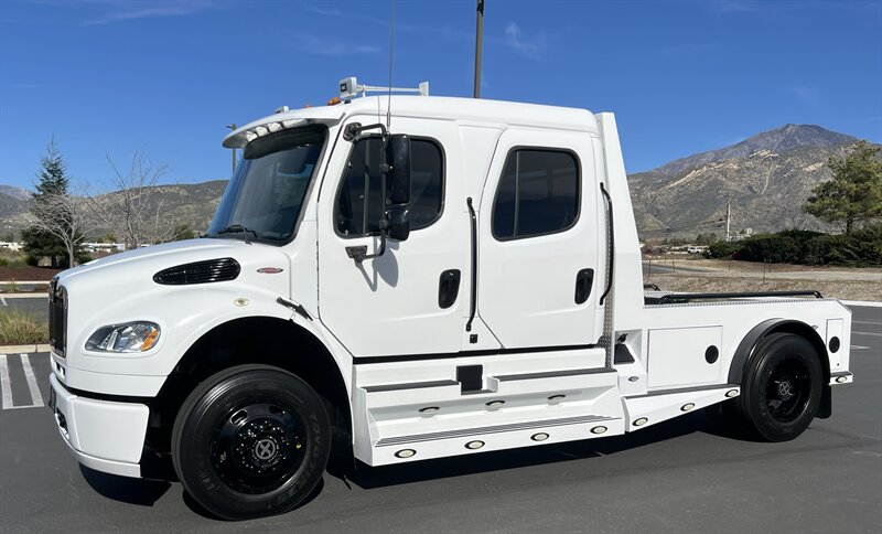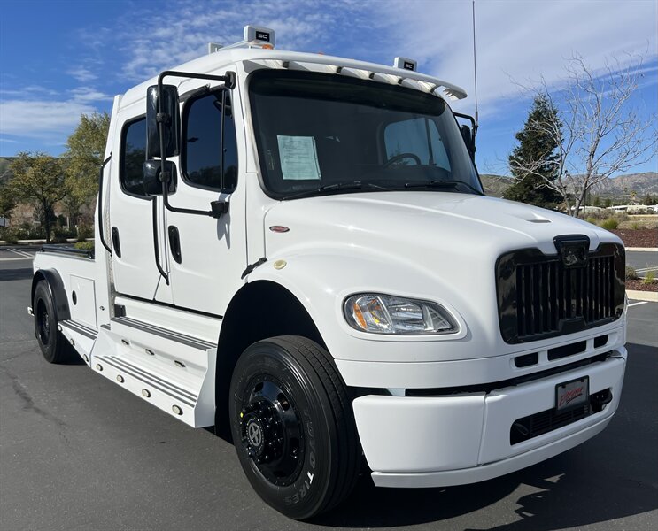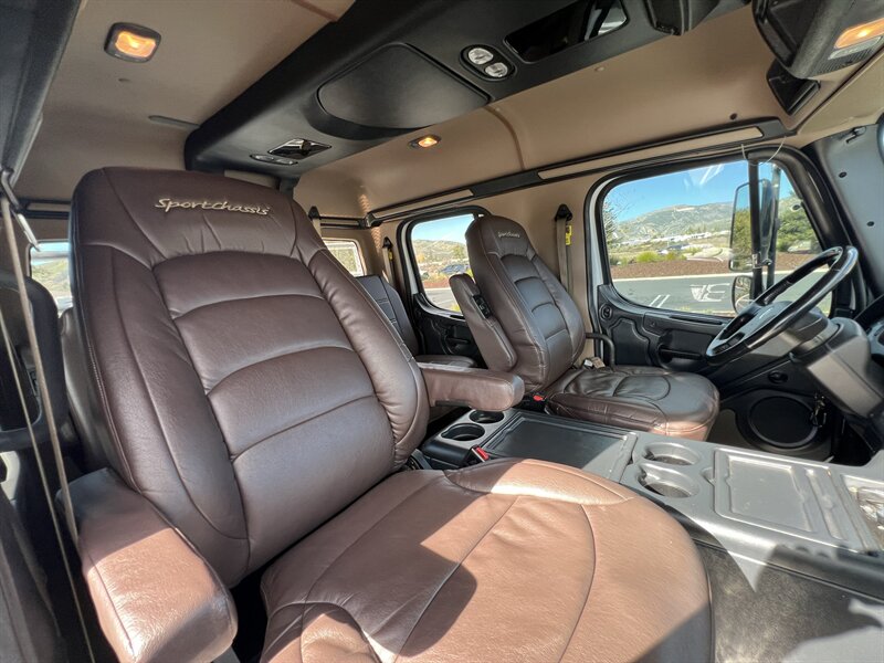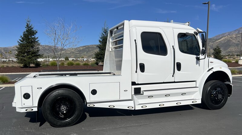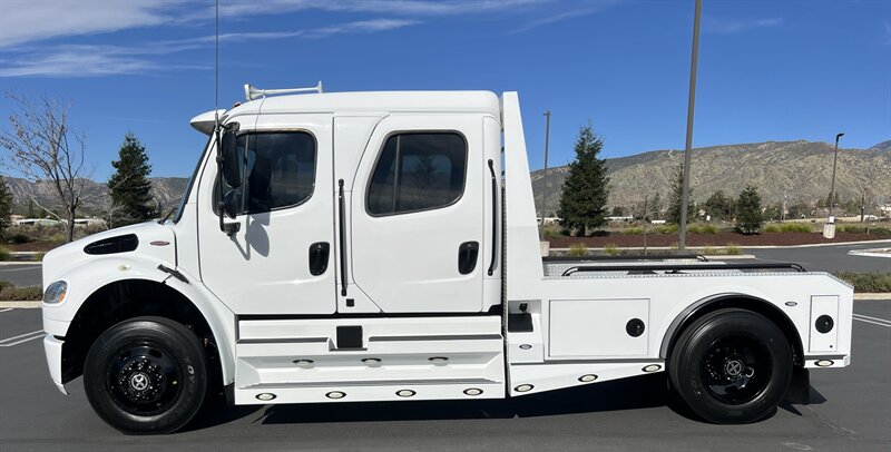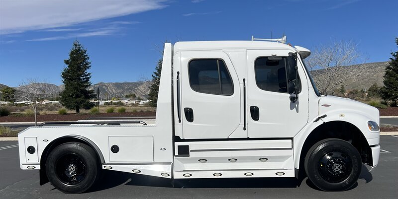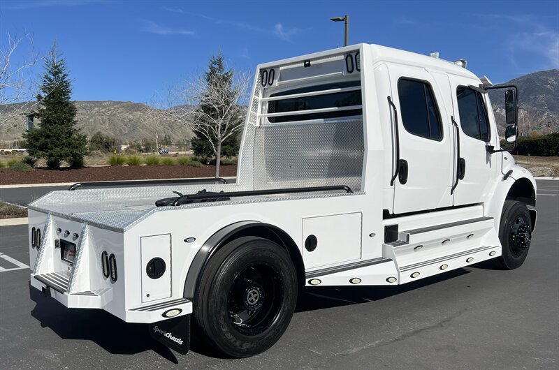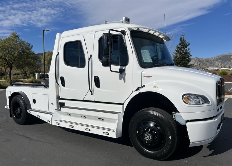 CALL SCOTT 909-225-7277 2013 SPORTCHASSIS RHA114 ...ONLY $129800..ALL REASONABLE OFFERS WILL BE ACCEPTED.. READY FOR WORK OR PLAY...FULLY SERVICED....BLACK OUT PACKAGE....AMERICAN RACING ATX WHEELS.. THIS TRUCK IS TURN KEY READY...Freightliner M2 Sport 106 Cummins -350 8.3L 350 HP ...1050 LB/FT ... Allison transmission TRV Series 3200Exterior Footprint 113 from base of wheels to top of air horn 99 wide from door to door, not including mirrors 277 from grill to bumper Axle, Suspension & Equipment BOSCH hydraulic brake package with optional air supply Wabco 4S/4M anti-lock brake system AF-8.0-3 10,000 lb single front axle 10,000 lb taper leaf front suspension Payload capacity 6,161lb Gross vehicle weight rating 19,500lb TRW THP-45 power steering Bilstein front shock absorbers Maintenance free rubber bushings 11,500 L-Series single rear axle 4.56 axle ratio Trac-tech full time no-spin rear differential Castrol Transynd synthetic automatic transmission oil & Mobil synthetic 75W-90W All Axles Airliner 11,500lb SportChassis recreational vehicle rear air-suspension Manual dump switch for air suspension with autofill override valve Single rear suspension leveling valve w/ping tank Dual 80 gallon rectangular aluminum fuel tank Alliance fuel/water separator with heated bowl and indicator light Equiflo inboard fuel system w/ auxiliary fuel supply return ports Tires & Wheels F/L Domed Turbo 22.5X8.25 10-HUB PILOT aluminum wheels 255/80/R22.5 16ply radial tires Cab Interior Spacious luxury class crew cab No CDL required Short turning radius Backup camera Leather wrapped steering wheel Air-ride premium leather seating. Lay down rear sofa Marine grade carpet and protective floor mats USB power ports 115-volt power outlet. Auto locking no-spin rear differential Dual 26 Air Horns CALL SCOTT 909-225-7277 E-mail: scottc@extremesportchassis.com.