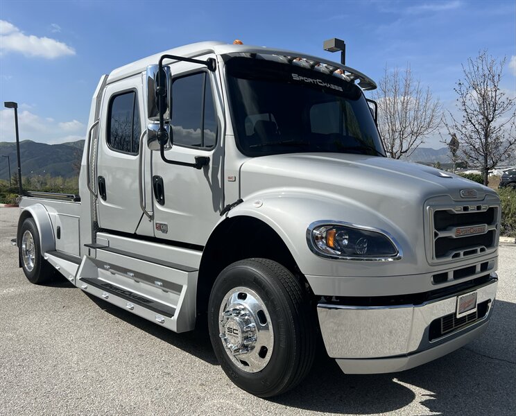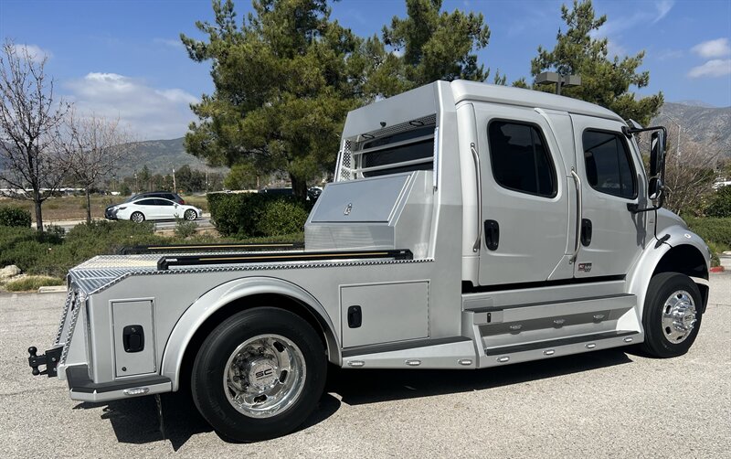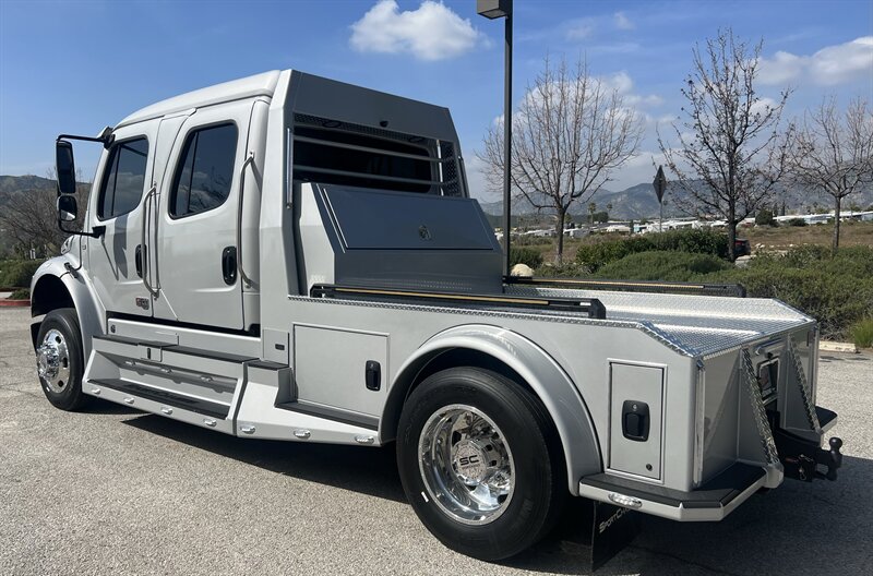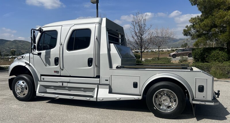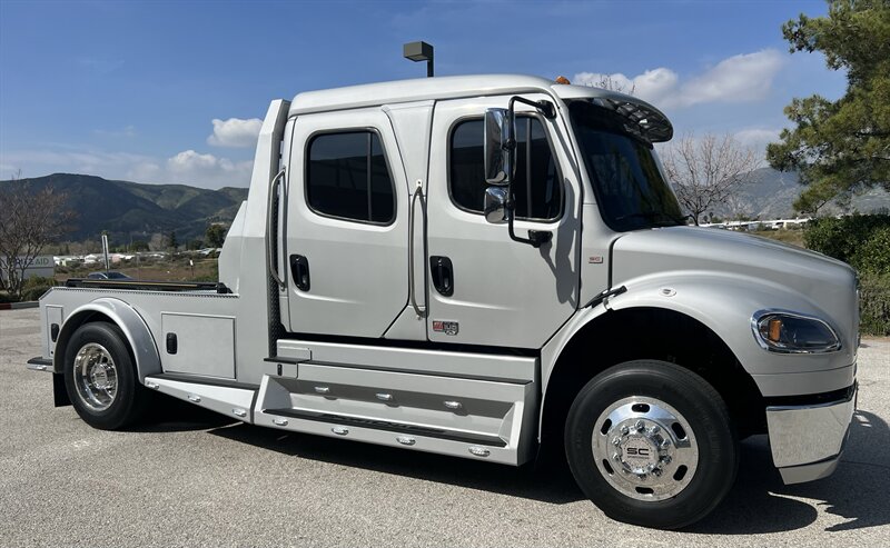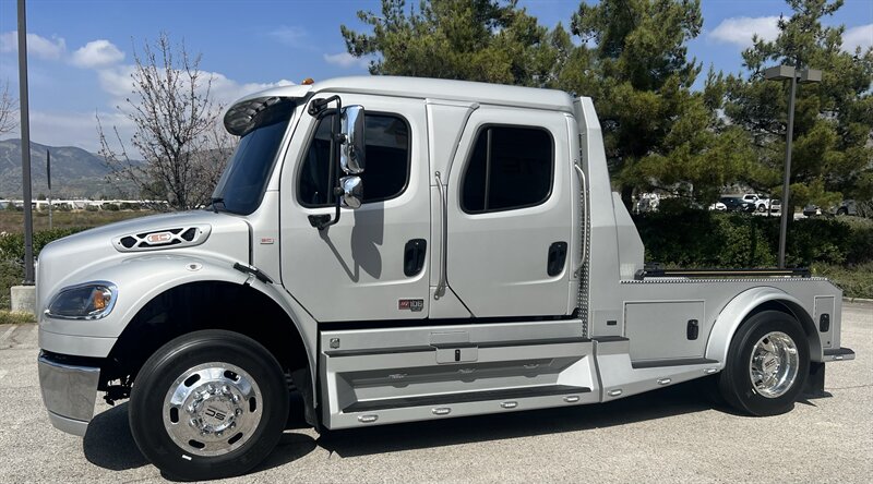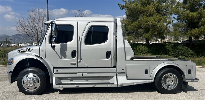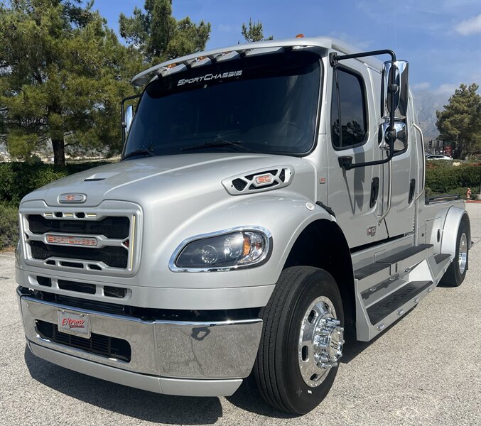 2025 FREIGHTLINER SPORTCHASSIS LH5 PLUS**EXTREME PRICE $184800**ALL REASONAL OFFERS WILL BE ACCEPTED**PAINTED STORAGE BOX** 30K FACTORY INSTALLED BUMPER PULL HITCH**TINTED WINDOWS* CUSTOM GRILL WITH RGB LIGHTING**FULL MASSAGE SEATS** LIKE NEW**New Features! New Power! The all new SportChassis LH5 is a definite head turner, with its stylish body design and all the fresh new features. We went back to the drawing board and did a total redesign of our hauler to include all the things customers have asked for as well as a total reconfiguration of power-train. This beast is working with a new gear ratio in the rear differential and a much more powerful shift pattern. • Freightliner M2 Sport 106* Detroit Diesel DD8 375 hp 1050 torque**Allison transmission TRV Series 3200 • Aircraft Grade Aluminum Body • Air-Ride Cab and Suspension • Sealed Storage Compartments • No-Spin Rear Differential. New taillight design with integrated break lights and backup illumination Wrap around step design compliments the new rounded edge look Wider bedrail with optional integrated LED marker strip and bed illumination New contoured headache rack with integrated LED bed lights and new style taillights Optional large storage box with 24 cubic feet of storage space for those oversized items. Watertight underbody storage with internal lighting and locks that integrate with keyless entry New style fuel door which flows seamlessly with the round edge tank cover design Soft style tread step that is designed to perform in wet conditions and looks great in any weather Custom aluminum wheels are now a standard and they can be special ordered in black with accents LED headlights and marker lights are now standard on all units. Luxury air ride seating with seat heat and air lumbar adjustments Premium 5 speaker sound system with a 12’ subwoofer within the center console Sports car style leather wrapped steering wheel with simulated woodgrain accents Rear heat and air system is now standard on all SportChassis models Pre-configured for in cab adjustment and the pressure gauge for air-ride hitch Large display multimedia head unit with voice control and device integration. All payments are based on 30% down, FICA score 780 or higher. 84 months at 6.99 approved credit. Months bases on units model year. All prices and payments are plus tax, license, prep, and doc fees. All prices and payments are subject to prior sale. All prices are plus dealer added options. Any questions, Please call the Sales Manager for assistance. Contact Information: 12655 18th Street, Redlands, CA, 92373, Phone CALL SCOTT 909-225-7277 Email: scottc@extremesportchassis.com